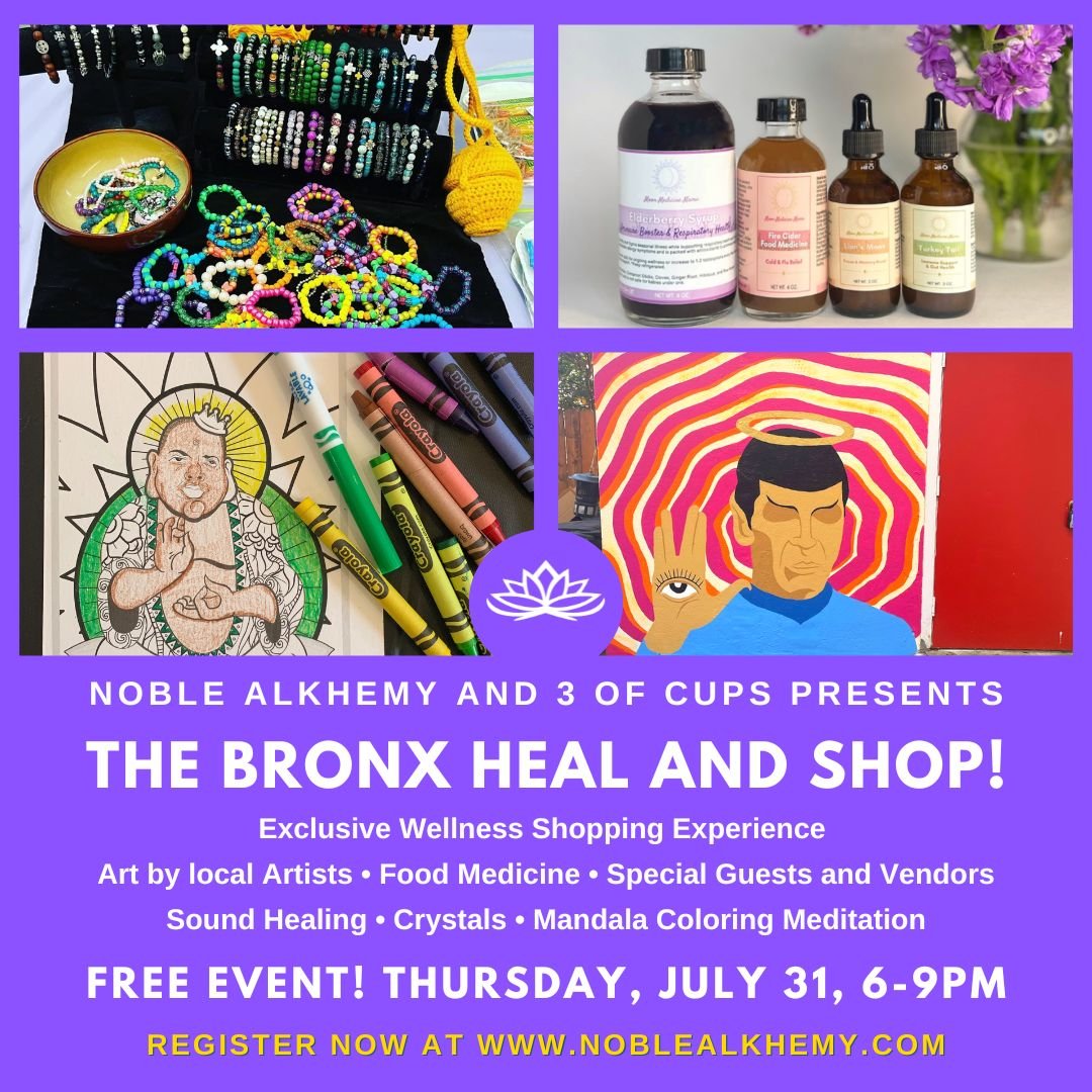 Enjoy mini wellness sessions, shop herbal remedies, handmade goods, art, crystals and moreโall at the Noble Alkhemy Healing Arts Studio. This community-centered gathering blends a one-of-a-kind wellness shopping experience with the soulful energy of the Bronx. Connect with local artisans, wellness practitioners, and conscious brands for a day of self-care, culture, and soul nourishment.